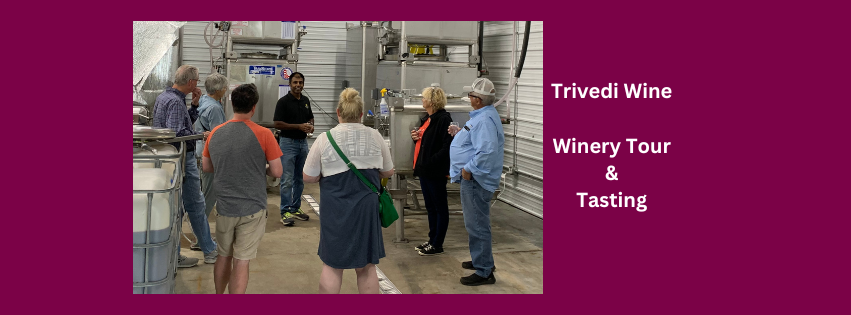 This 60-90 minute event on Fri, Oct 18, 2024 includes touring the Trivedi Wine production facility, learning about the equipment used in wine-making, and tasting wines that are in various stages of fermentation and aging in the cellar. Our maximum capacity on this tour is 10 guests. Only those above 21 years of age will be given the wine tasting. Please bring photo ID. We will meet inside the tasting room at 6 pm.