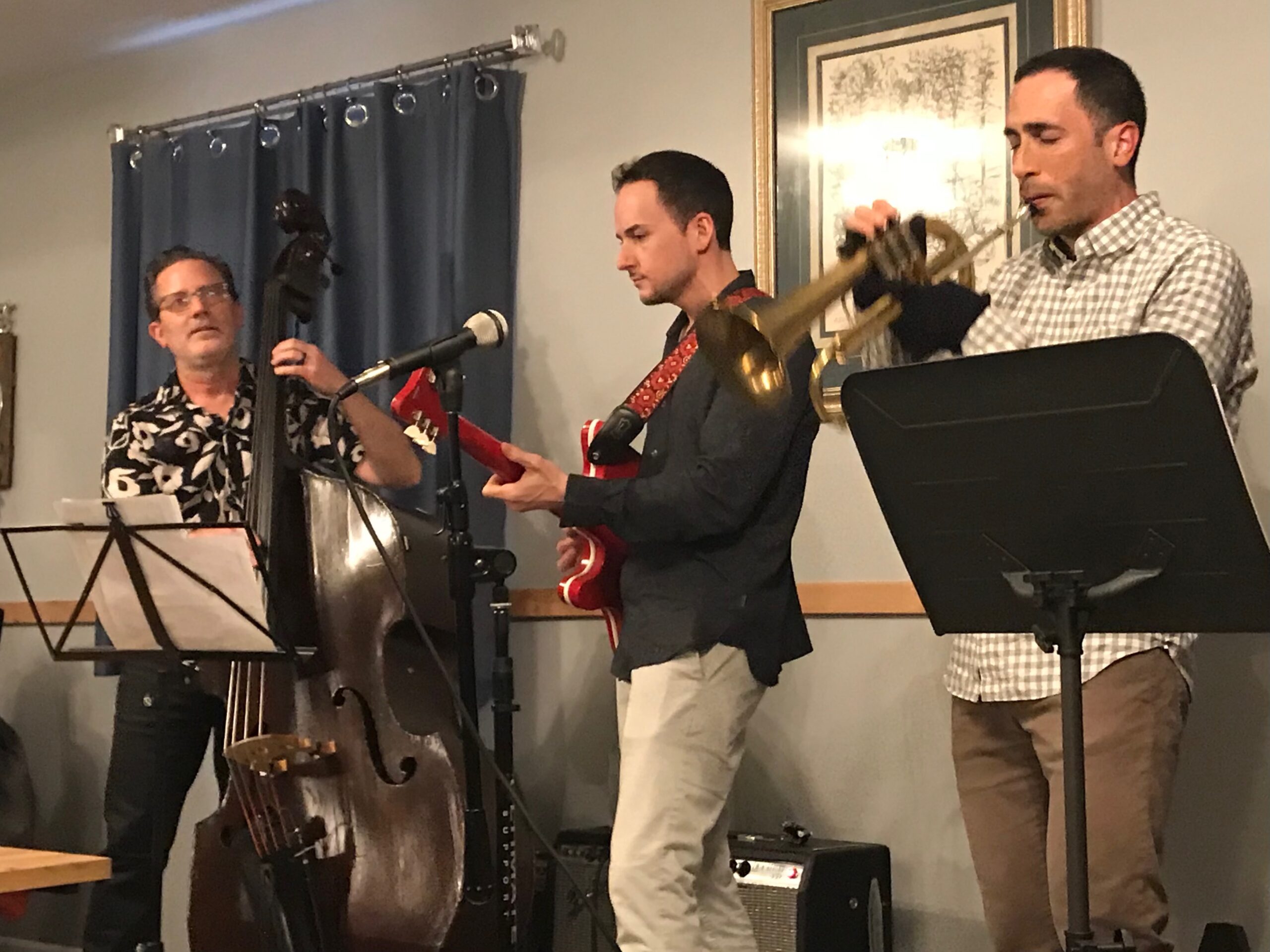 Please join us at Trivedi Wine to enjoy some great jazz music from The Tommy Johnson Jr. trio on Sat, Dec 27 from 6:30 to 9 pm. This trio consists of Tommy Johnson Jr. on trumpet, Asher Ben-Or (all the way from NYC) on guitar and Bryan Hicks on bass. Wine, beer. non-alcoholic beer, sparkling water as well as cheese, crackers, salami and summer sausage will be available for purchase in our tasting room.